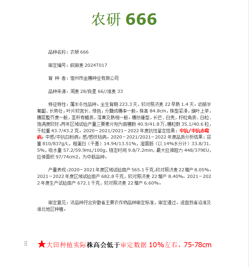 品种名称:农研666
