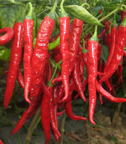 三、红泽一号:该品种是利用鸡泽辣椒和川椒杂交选育而成。早熟,株高60cm,株幅55cm,果长20cm,单果重18-20克,嫩果皮绿,熟果鲜红,味辣浓,适抗病性强,耐高温,亩产鲜椒3000公斤。是鲜辣椒走市场的最佳品种。