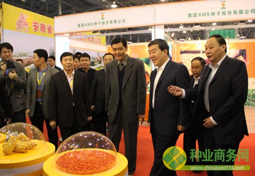 11月10日下午,农业部副部长牛盾在省长助理邵国荷的陪同下,巡视第四届中国国际种业博览会暨合肥农资会展馆。农业部计划司副司长周应华,农业部种子局副局长马淑萍,省农委副主任刘永春、王华陪同检查。