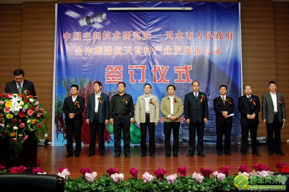 天水国家农业科技园区中国西部航天育种基地搭乘神舟八号飞船的244份农作物种子、曲种,历经17天太空历炼,于11月23日回归基地。这次随神舟八号上太空的244份种子、曲种是由中国西部航天育种基地天水神舟绿棚农业科技有限公司科技人员精心挑选,中国空间技术研究院进行包装搭载。其中有天水神舟绿鹏公司的辣椒、茄子、番茄、玉米、豇(菜)豆、南瓜、萝卜、山野菜等种子,也有合作单位甘肃农业大学的中药材种子,甘肃农科院的小麦种子,中国农科院兰州畜牧兽药研究所的牧草种子,天水师范学院的曲种,酒泉巨龙公司的酒曲,天水市农科所的马铃薯和蔬菜种子。这批种子、曲种于11月1日搭乘神舟八号进入太空,历经17天太空特殊环境的诱变处理,于11月21日在北京经行了交接,23日顺利回到天水。尚有54份农作物种子乘天宫一号在太空进行诱变处理。