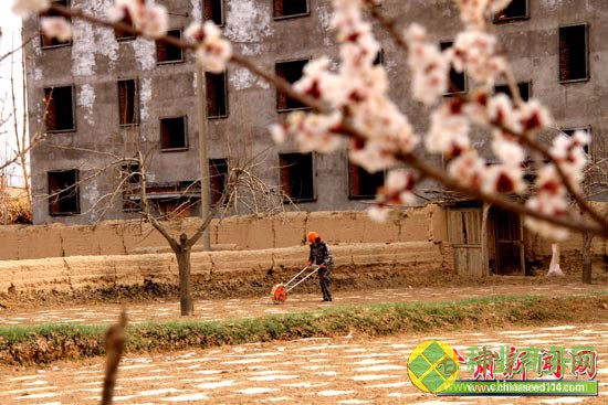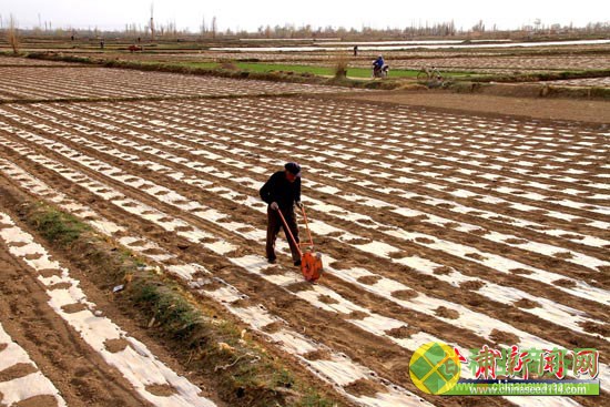 4月16日,张掖甘州区碱滩镇草湖村,村民们在田间推着玉米点播器播种制种玉米。据村民介绍,制种玉米的播种是根据种子公司的要求统一播种时间进行的,不能提前,也不能推后。目前,甘州区的制种玉米播种已经从东到西,从南到北全面展开,到4月20日前后全区制种玉米将全部播种完毕。通讯员 陈礼 摄