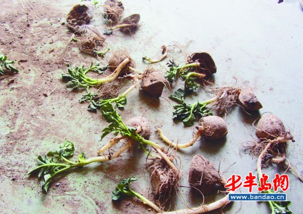 “土豆苗小,怀疑土豆种子有质量问题,要不这个时节土豆都开花了。”王波说,当时自己听信了该镇一家种子站王某的话,今年3月份从胶州市的青岛胶研种苗研究所买来土豆种“荷兰15号”,花了9000元。“当初送来时就发现了不对劲,切开后发现土豆种患有环腐病。”王波说,交涉后这家种苗研究所将土豆种拉回去,后来更换了一批土豆种子。