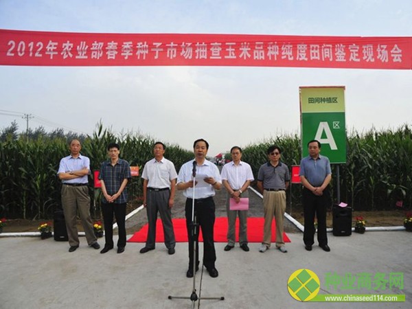 全国农技中心于8月6-8日在山西省长治市组织开展了2012年春季种子市场抽查玉米样品品种纯度田间鉴定活动。21家省级种子检验机构的田间检验员及有关玉米育种专家组成的鉴定组,对春季种子市场抽取的675份玉米种子样品进行了品种纯度田间鉴定。全国农技中心主任陈生斗、副主任邓光联、首席专家梁志杰、农业部种子管理局副局长宿文军、山西省农业种子总站站长马苍江、长治市农委主任米燕平等领导参加了鉴定活动启动仪式。启动仪式由邓光联副主任主持,陈生斗主任、宿文军副局长等领导作了讲话。