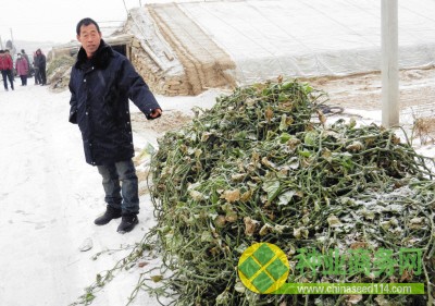 “这些黄瓜藤都是还没等结出黄瓜就烂在地里了。”村民姜世杰欲哭无泪,在他身旁,高高的堆着一堆枯死的黄瓜藤。姜世杰告诉记者,去年8月,他花了640块钱在马圈子黄瓜市场买了8袋黄瓜种子。因为听说前年有人买过一种叫“80-2”的种子能增产,所以姜世杰就想买些试试,但当他要求购买“80-2”时,种子经销商却拿出了一袋标识为“80-12”的种子,告诉他,这就是他所需要的种子。