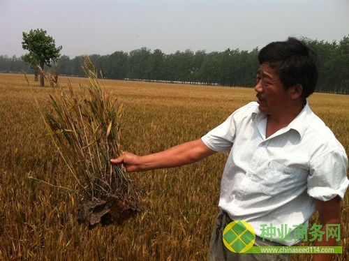 据顺河村村民介绍,古营集镇中72个村子从前年开始今年是第三次购买镇政府所推广的“优良麦种”——矮抗58。不料,往年长势、收成良好的麦种“矮抗58”,眼看今年马上就要到收割的时候却愁坏了顺河村120多户村民,只见500多亩麦地里将近80%的麦穗没有麦粒。记者随手采了一颗麦穗,搓开后,发现里面竟然没有颗粒,村民朱庆林拔起一把麦子,带着怒气咆哮:“我们老百姓一年就指着这一季春麦收获来养家糊口,可是你看看这政府推广的麦子,有的不灌浆,有的干脆就不结麦穗。”一位村民肯定地告诉记者,“今年政府推广的这批麦种绝对不是真的‘矮抗58’。”