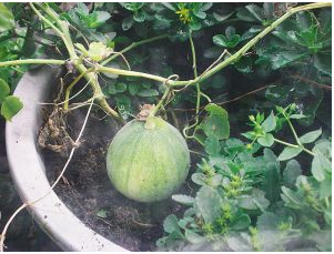日子一天天过去,不少小西瓜都掉了,只剩下一个在一天天地长大。如今,这个小西瓜长得有甜瓜大小了。