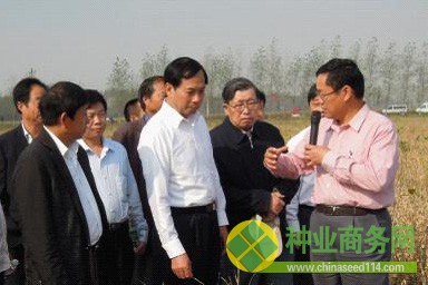 陈萌山一行考察了大豆品种“中黄13”配套技术生产田,听取了项目总体情况及6项核心技术的介绍,观摩了大豆免耕覆秸播种和机械收获演示。参会人员对“中黄13”品种及田间管理全程机械化表现出浓厚的兴趣。