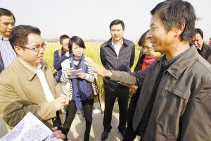 “高产,米质优,口感好,非转基因,老百姓可以放心食用。”“宁波杂交水稻之父”、宁波市农科院马荣荣院长在田边介绍着,一旁的农业部种植业司叶贞琴司长不住地点头称赞。记者 王鹏 摄