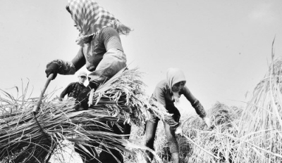 10月29日,京西稻珍品胭脂稻在北京市海淀区上庄镇西马坊村御稻苑开镰。“老北京人”又能吃到小时候记忆中香气四溢的稻米了。