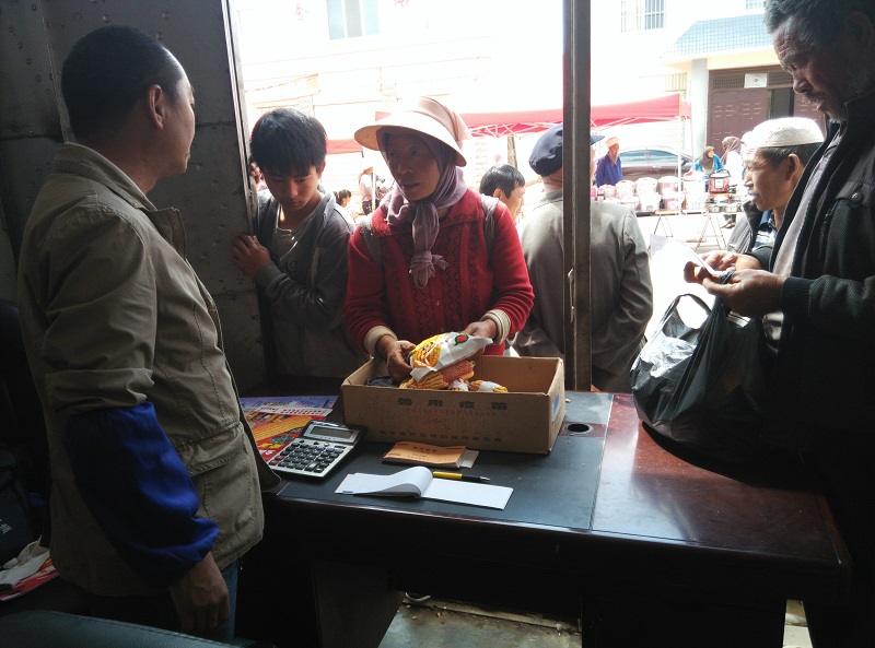 图为技术人员向群众推广良种