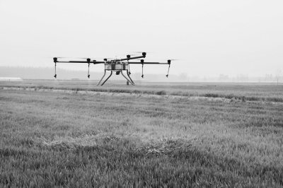 今年,山东郯城恒丰农机合作社在当地农商行的扶持下,投资40余万元,引进了5架农用无人直升机,用于麦田“一喷三防”。无人直升机每小时作业面积达30~40亩,喷洒效率较人工背负喷药效率高出几十倍。图为其中一架无人机在杨集镇饮马庄村东麦田里作业。李井水徐刚摄