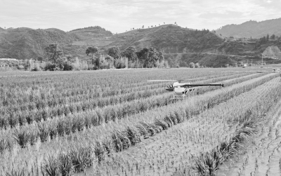 制种基地县,当下正是水稻病虫草害防治关键期,图为近日注溪镇周坪村制种大户黄喜文用植保无人机为200亩水稻制种田喷洒农药。戚艳琴摄