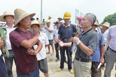 专家张似松在湖北省嘉鱼县簰洲湾镇刘家堤村受灾现场,为农户讲解水稻灾后补救措施,将生产自救培训会“搬”到了田间地头,现场至少有200多名农民闻讯赶来听培训。图为培训会后,张似松(右)为农户解答疑问。本报记者戴军乐明凯摄