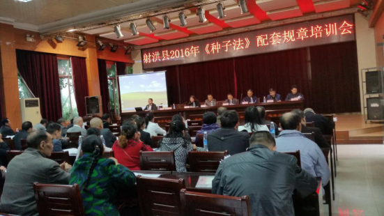 2016年10月15日,射洪县农业局组织了一次《种子法》配套规章培训会,在射洪注册的四家制种公司负责人、各级种子经销商近300人参加了培训。会议由县农业局总农艺师吴春归主持并就培训作用和意义作了动员讲话。
