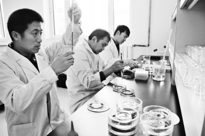 近日,黑龙江农垦鸭绿河农场全面开展测土配方施肥工作,对采集到的800余份土壤样本的pH值、有机质、碱解氮、速效磷、速效钾等进行检验,为种植户掌握土地肥力提供依据。图为农技中心技术人员正在化验土壤样本。 宋晓伟摄