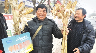 “活标本”,走街串巷现身说法,向赶集的村民们兜售玉米种。(记者 孔浩 摄)