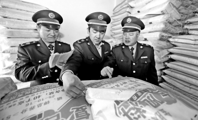 春耕时节,江西省广昌县开展“红盾护农”专项行动,对全县农资产品开展检查,打击假伪农资坑农行为。图为该县市场和质量监督管理局执法人员在检查化肥。 曾恒贵摄