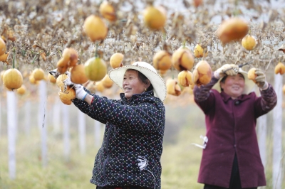 ▲二十四节气中的小雪来临,各地农民抢抓农时做好采收、播种、御寒管理等工作。图为11月22日,江苏省盱眙县农民在采摘成熟的吊瓜。
