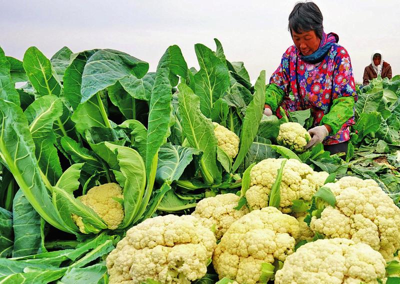 近年来,河北省唐山海港经济开发区规模化发展果蔬种植,打造“万亩果菜”基地,推进乡村振兴。目前该区果蔬种植面积达5万亩,带动7000多户农民增收致富。图为近日,唐山海港经济开发区王滩镇东高各庄村的菜农在收获菜花。