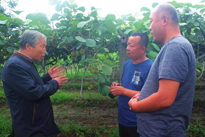 王联武(右二)一行查看猕猴桃长势情况