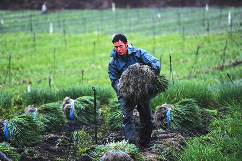 近日广西柳州气温骤降,在广西柳州市柳江区三都镇里贡村香葱种植基地,农民忙着收获香葱,确保节日期间市场