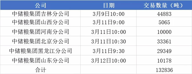3月8日接连发出5地轮换玉米交易公告,合计总量87953吨,加上9日吉林的44883吨,本周至今已有13.28万吨轮换玉米投放。