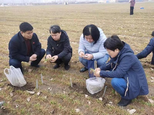 日前,为及时了解各参试冬小麦品种的品种特性,严把品种试验关,市农业中心郭云峰副主任带领植保植检部(种子技术服务部)技术人员深入到宁河、宝坻、蓟州等区农作物试验承试点,督导调查各参试点的冬小麦品种的抗寒性以及田间试验情况。技术人员同各试验点工作人员一道进行细致的田间性状观察记载,测墒情、查根茎、数分蘖,计算死苗数,查看生长势,全面了解试验进程、品种特性和越冬返青情况。目前,各项试验正在有序进行中,各试验点田间管理规范、观察记载数据完整,参试品种的性状得到了较好展示。