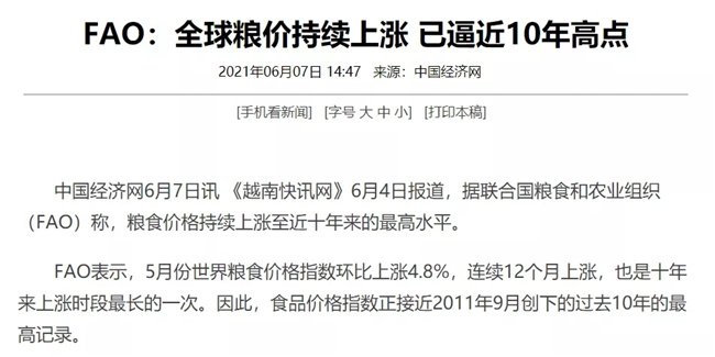 全球粮价持续上涨 已逼近10年高点