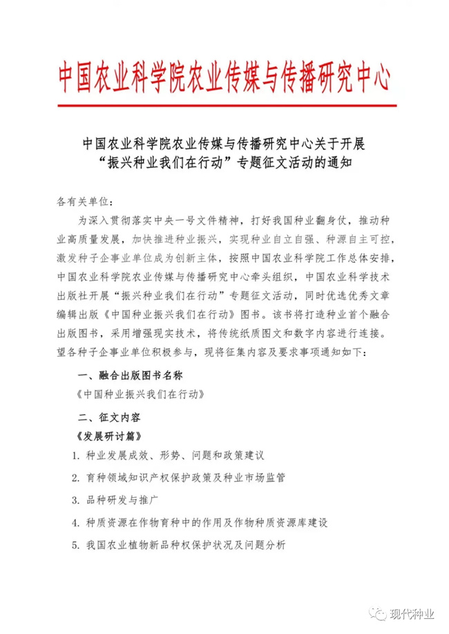 关于开展“振兴种业我们在行动”专题征文活动通知