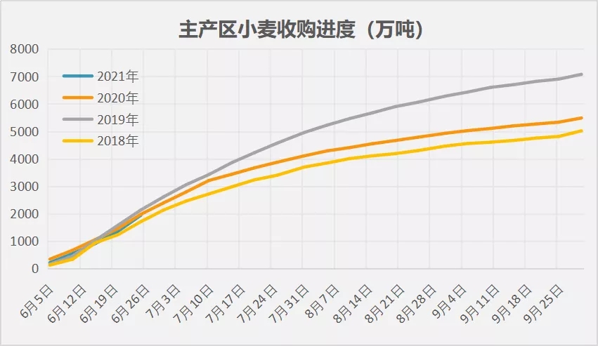 据了解,目前各级小麦储备轮入已基本接近尾声,政策性采购数量陆续大幅减少,不过仍在入库的采购价格依然保持高位坚挺。9月9日,广东华南粮食交易中心受佛山市禅城区粮食储备库委托采购2021年产白麦1200吨,成交1200吨,成交率100%。起点价2980元/吨,成交价2970元/吨。9月10日,上海粮食交易中心市级储备计划采购国产小麦20750吨,全部成交。其中:采购2021年国产二等普麦最高成交价2730元/吨、最低成交价2715元/吨、成交均价2725元/吨;采购2021年国产二等强筋白麦成交价2800元/吨。