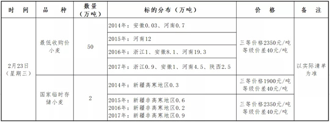 2月23日最低收购价和国家临时存储小麦竞价销售交易公告