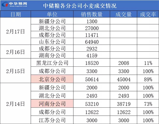 2月23日小麦拍卖继续