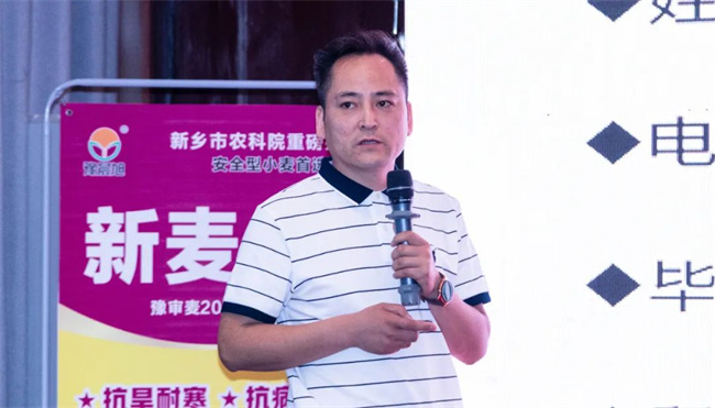 来自尉氏县的合作伙伴于总分享了新麦60在推广中的经验与感想。新麦60田间表现综合性状优势突出,综合抗性好,高产稳产,自推广以来,得到了广大种植户与农业主管部门的高度认可,市场潜力巨大。