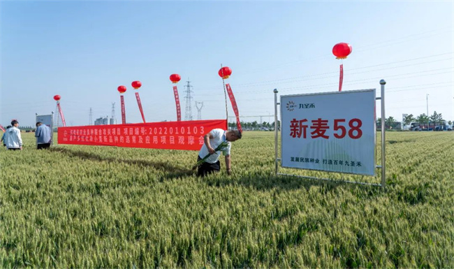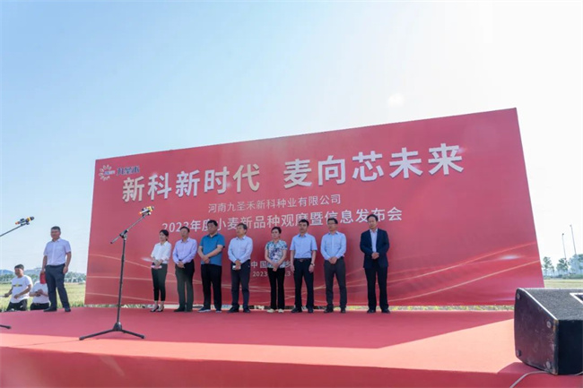 2023年5月12日-13日,河南九圣禾新科种业有限公司(以下文中简称九圣禾新科种业)小麦新品种观摩暨小麦新品种信息会在河南新乡隆重召开,与会专家领导、各地经销商、种地大户、粮食贸易代表齐聚一堂,鉴品种、把方向、谋思路,旨在抢抓种业振兴机遇,加强交流沟通,促进深度合作,实现发展共赢。