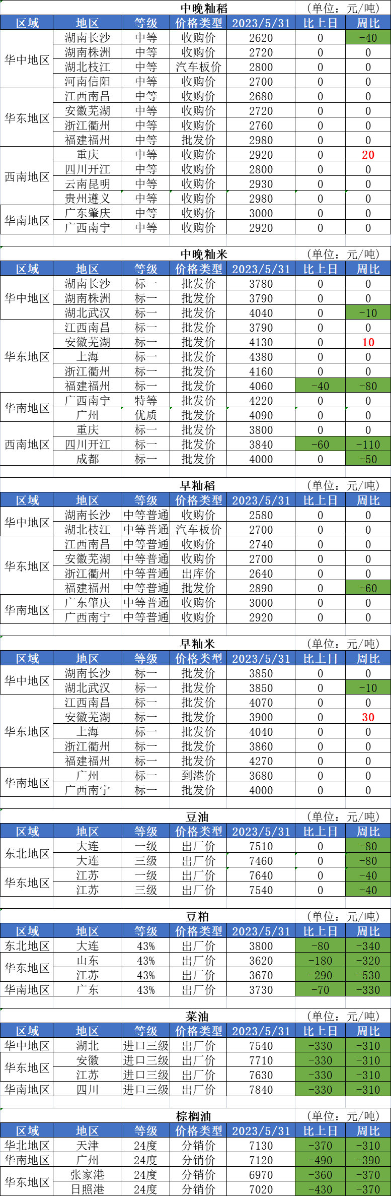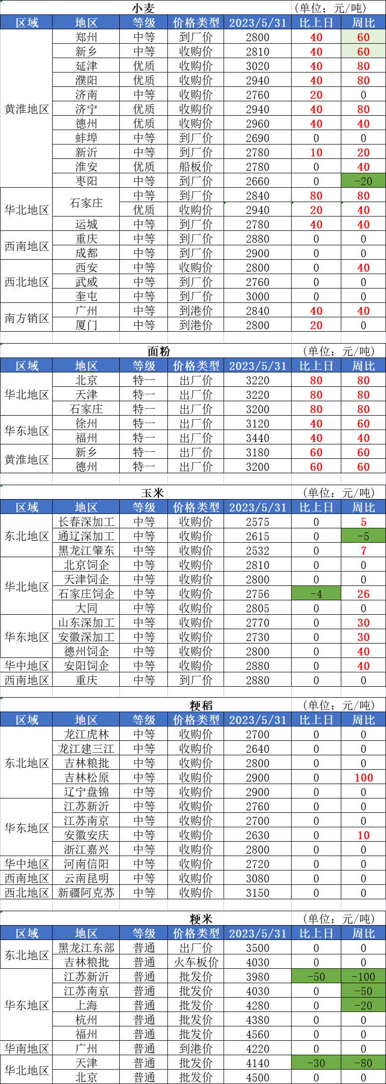 2、5月31日国内玉米价格小幅震荡,其中:东北地区、南方销区、南北港口玉米价格基本稳定,山东地区、华北地区玉米价格局部小幅下跌,跌幅6-10元/吨。