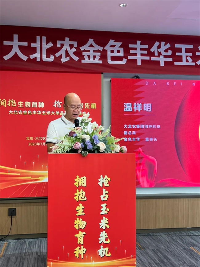 会上,创种科技副总裁、金色丰华董事长温祥明老师在致辞对各位事业伙伴的到来表示热烈欢迎,对金色丰华事业的大力支持表示感谢。温祥明老师首先详细介绍了大北农集团雄厚的发展基础,并从发展目标、产研合作、市场推广等方面,阐释了金色丰华的发展规划。