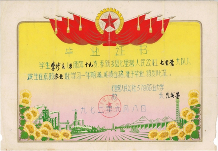 1968年,“七里营人民公社5786农业大学”正式开学,这是一所模仿延安抗大的办学模式,依托各类专家资源,边生产边办学的大学,县里亲切地称其为“农大”。1971年,19岁的李修立成为这所大学的第四届学生,他如饥似渴地学习农业基础知识,很快就掌握了测产测报、病虫害防治等实用技术,并开始学习撰写生产总结、试验小结和论文。毕业后,李修立回到生产队担任技术员,帮助科学家落实科学试验方案,因勤学好问、踏实肯干,深得专家们的欣赏。齐兆生等专家把李修立等技术员看做自己的学生,经常利用业余时间为他们传授各类知识,还曾亲手为他们擀面条做饭,这种海纳百川、平易近人的作风深深影响了李修立的一生。