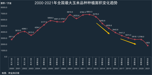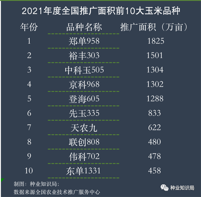 2021年,更是分别达到了1825万亩(郑单958),1501万亩(裕丰303),1304万亩(中科玉505);