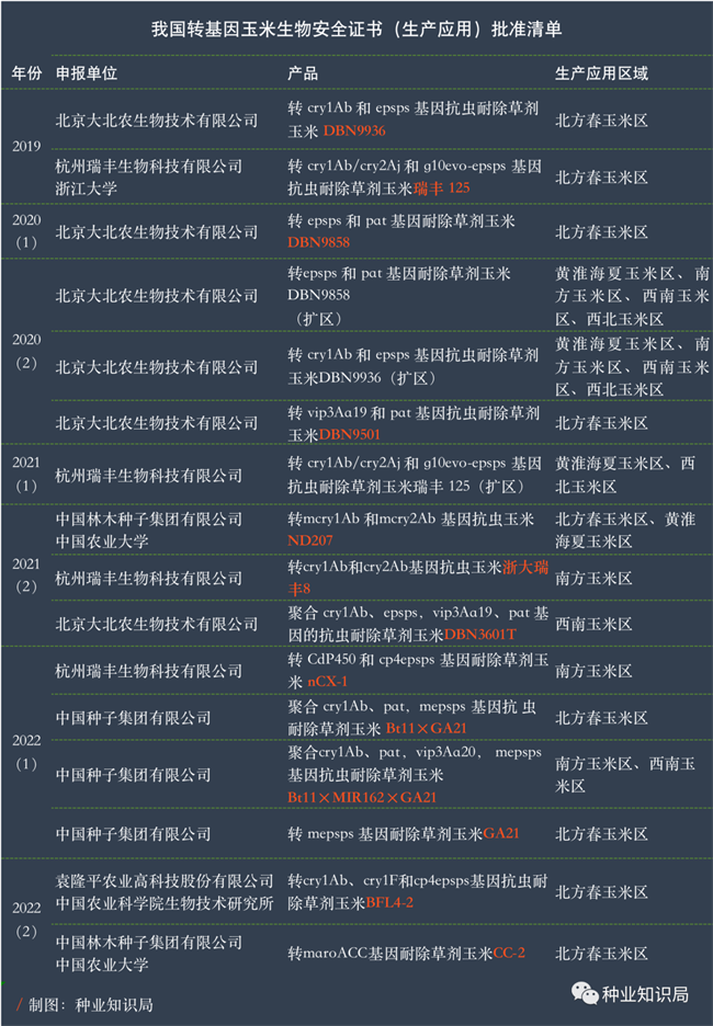2020年,转基因产业化进程提速,至今有13个转基因玉米产品获批农业转基因生物安全证书;