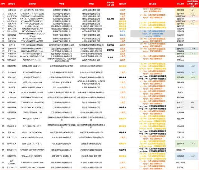 而从品种所属公司来看,通过初审的转基因玉米品种中,隆平高科及其子公司、中国种子集团、大北农及其子公司、登海种业分别占8个、4个、3个和2个;转基因大豆品种中,大北农占5个。