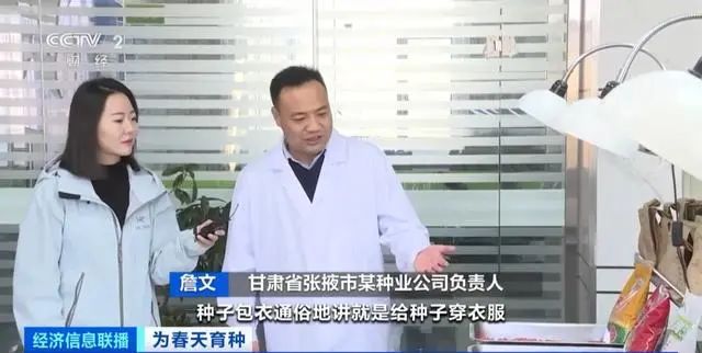 甘肃省张掖市某种业公司负责人 詹文:种子“包衣”通俗讲就是给种子穿衣服,保护种子不被地下的害虫、病菌所危害,同时提高种子抗低温等不良环境的作用。