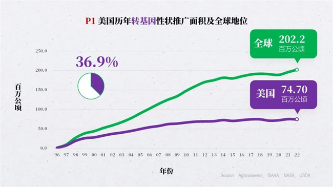 美国转基因作物种植面积约占全球的 36.9%,一直是全球转基因作物第一种植大国。