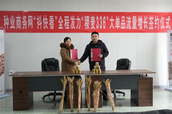 2023年12月29日,种业商务网与温县天一麦丰种业有限公司举行了“抖快看”全程发力“稷麦336”大单品流量增长签约仪式。种业商务网董伟主任、天一麦丰种业李卫东经理出席签约仪式。