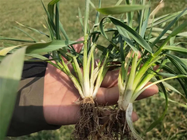 1、苗齐苗壮,分蘖力强,抗倒性好。半冬性,幼苗半直立,叶片窄小,叶色深绿,分蘖力较强。株型紧凑,抗倒性较好。