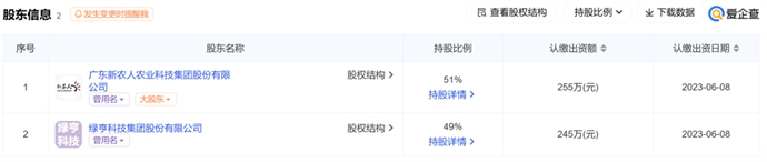 2023年6月15日,绿亨科技公告,基于进一步延伸蔬菜种业下游产业服务链,拟购买蔬菜种子下游企业新农人部分股份,拟投资规模不超过1800万元。双方还合资设立了广州福旺种业科技有限公司(公司名称具体以市场监督管理部门登记核准为准),注册资本500万元,其中绿亨科技出资245万元,占注册资本49%。