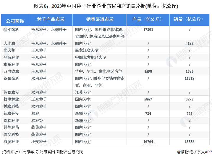 从重点布局领域看,隆平高科、大北农等企业均布局了玉米种子、水稻种子等粮食作物种子,新农开发、锦棉种业主要生产棉种,鲜美种苗、绿亨科技主要为蔬菜种子。渠道方面,隆平高科、荃银高科等国内外渠道均有布局,而北大荒、苏垦农发等企业主要销售市场为所在省份,大北农、丰乐种业、敦煌种业等主要在国内布局。种子产量方面,隆平高科、农发种业产量较高;销量方面,荃银高科、农发种业披露的种子销量较高。