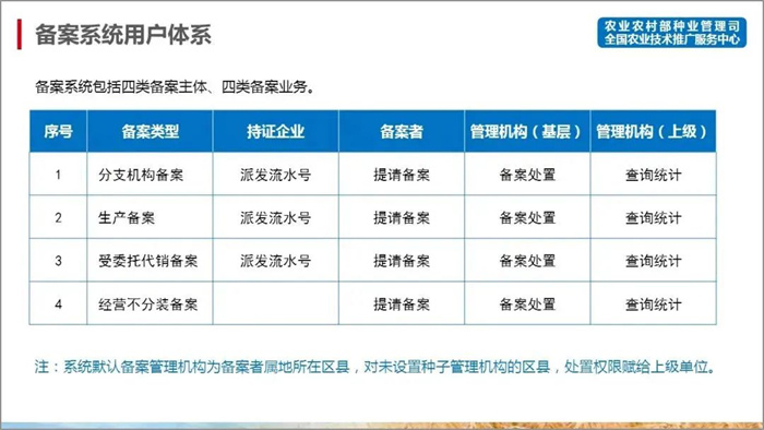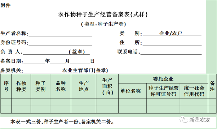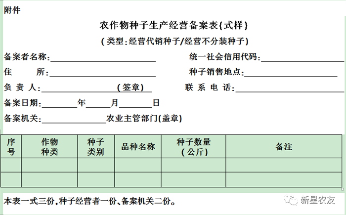 种子生产经营者在办理备案时保证提交的所有材料真实有效,备案数量应与购种凭证或委托代销合同一致,生产销售的所有种子都备案可查,提交备案系统后经县农业农村局审核通过后,方可依法从事种子生产和经营活动。审核通过后,在备案系统上打印《农作物种子生产经营备案表》,交县农业农村局盖章后,张贴于门店内,便于执法部门检查及购种者安全购种。