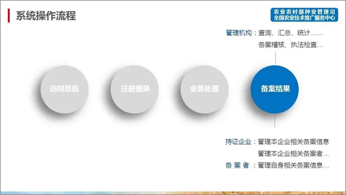 网上备案操作指南、应用软件可在农作物种子企业集成业务办理平台查询http://202.127.42.47:8015/business.aspx。