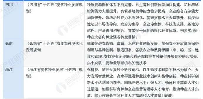 “十四五”期间,各省市也积极推动育种技术提升,加强农业种质资源保护,加强育种企业经营管理。主要省市