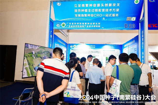 广东省科学院南繁种业研究所带来了几款玉米、甘蔗良种,以及防治病虫害的辅助设备。成果转化办公室主任卢传礼介绍,目前,全国超九成优质甘蔗花穗均由所里提供,通过省级以上审(鉴、认)定或农业农村部登记的95%甘蔗新品种也是由南繁种业研究所提供的甘蔗杂交种子选育而来。